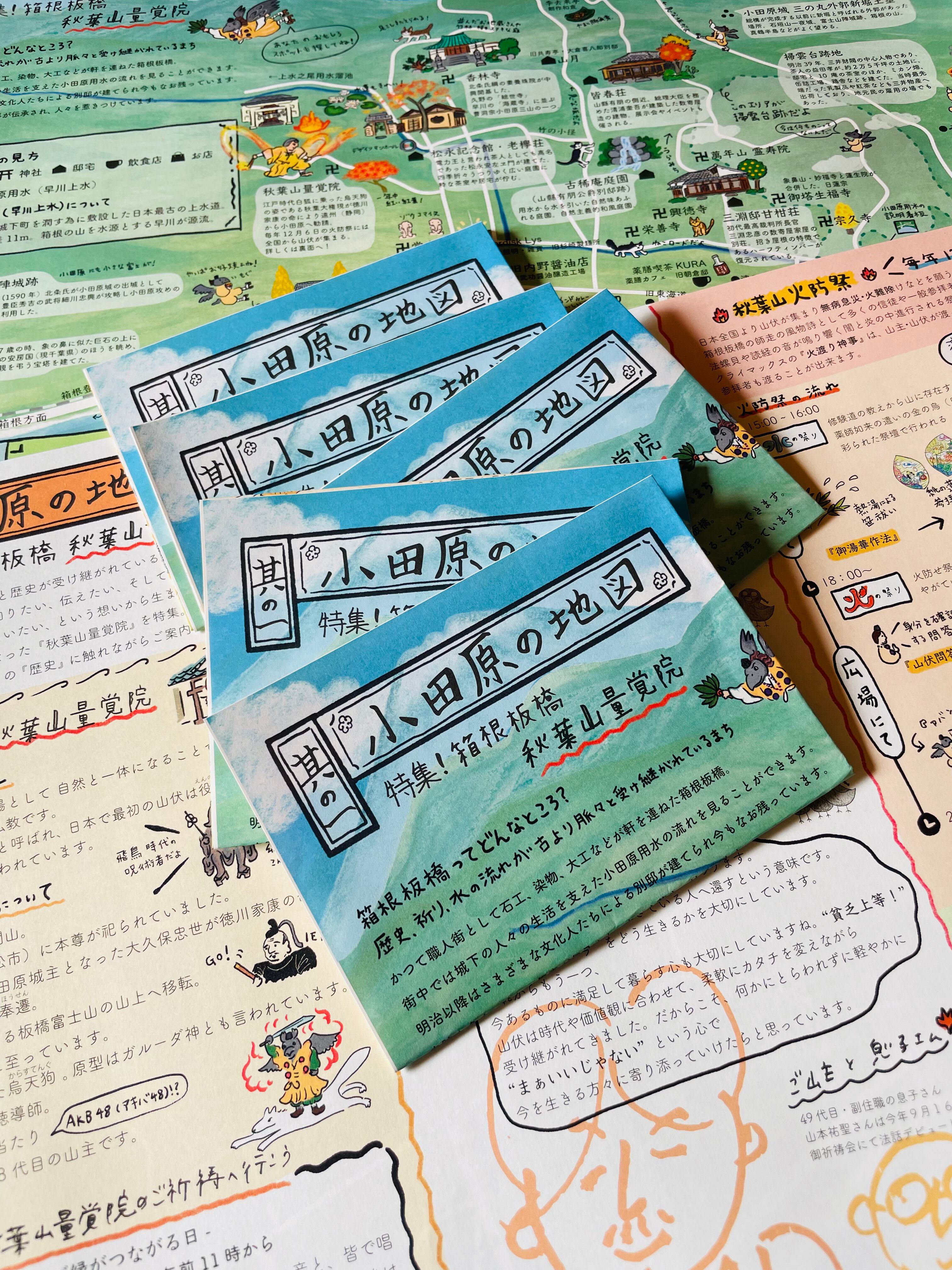 「小田原の地図其の一」を2枚と手作りシールを数枚セットにしてお送りいたします。